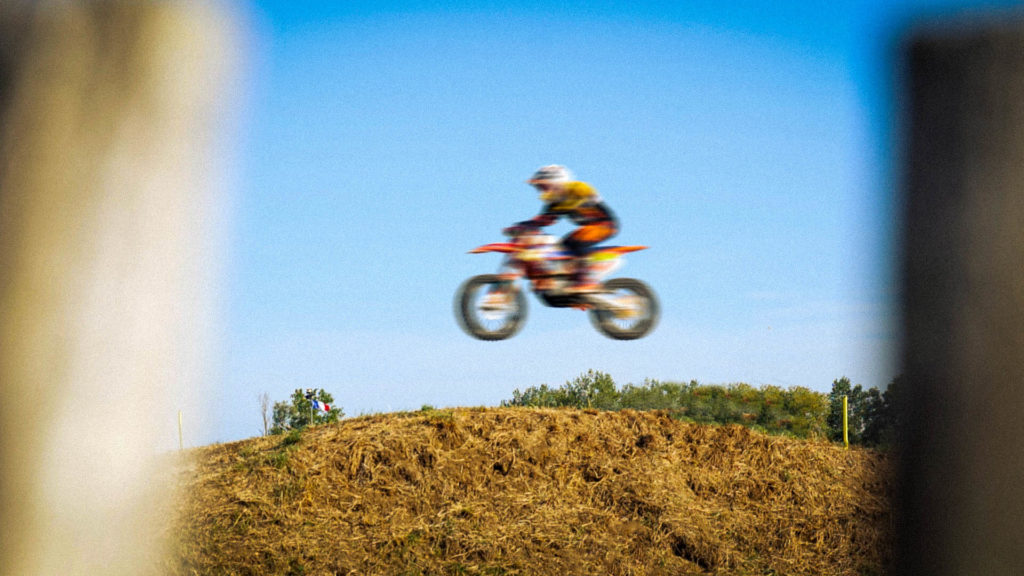 Série de photos de pilotes de motocross sur un terrain de cross faites avec un Canon EOS 1300D.